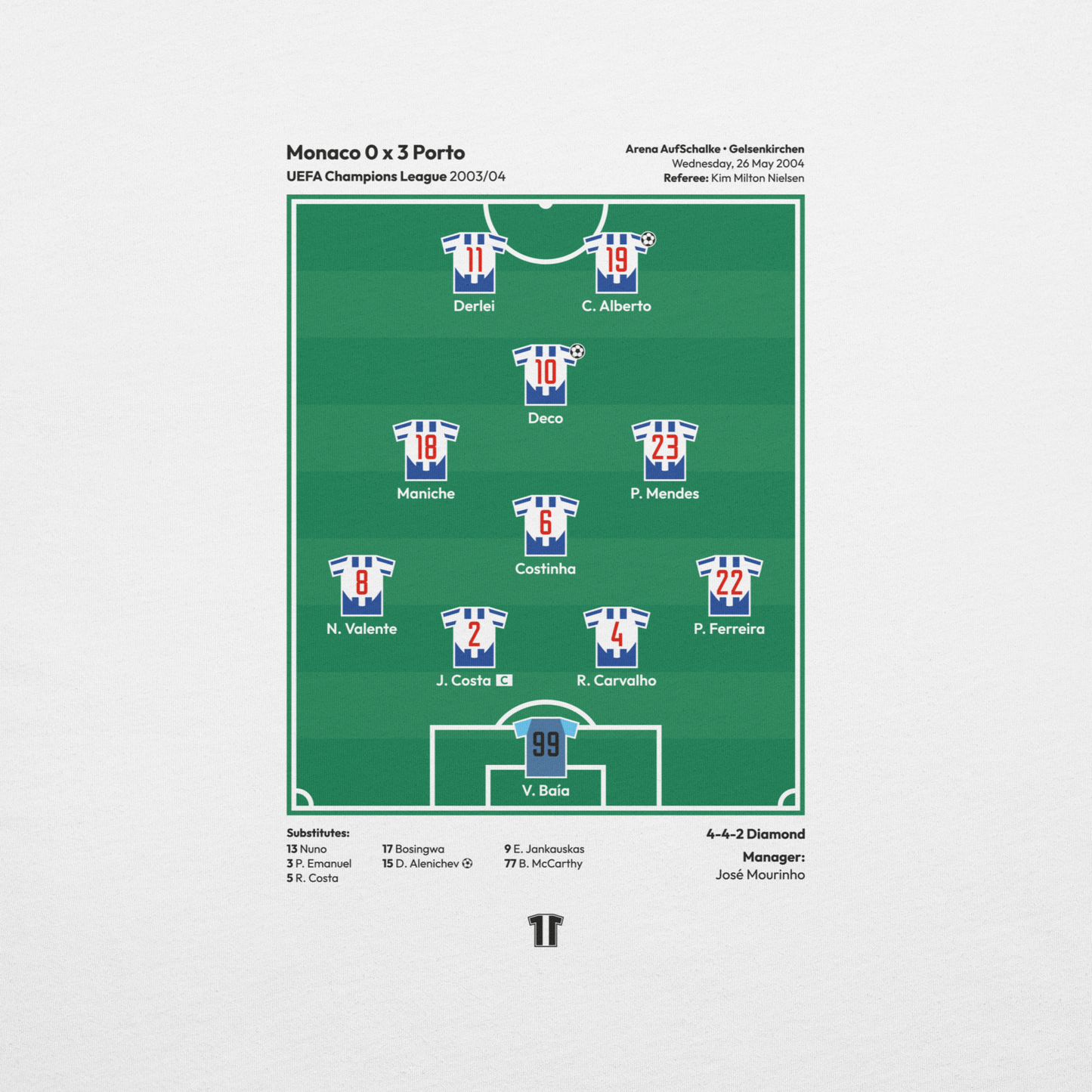 - Estampa exclusiva com o plantel campeão da Champions League 2003/04